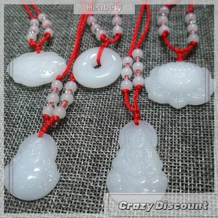 Heabety {dây chuyền phật} Phật trắng ngọc tay dệt mặt dây chuyền vòng cổ Lotus guanyin Phật Long cuộc sống khóa mặt dây chuyền may mắn Vòng cổ
