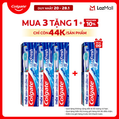 [Chỉ 20-28.1_Mua 3 tặng 1] Bộ 3 Kem đánh răng Colgate MaxFresh ULTRAFREEZE the mát gấp 10X 225g/tuýp tặng bàn chải đánh răng lông tơ cao cấp