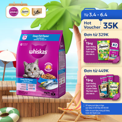 Whiskas Adult Cat Food with Sea Fish Flavor - 3kg - Complete & Balanced Nutrition for Cats 1 Year and up
