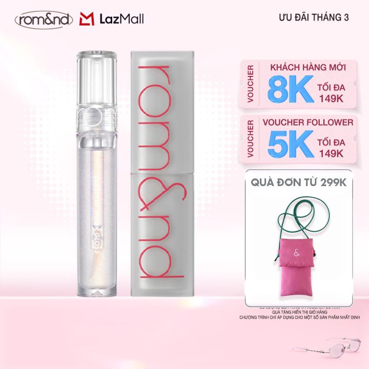 Combo Son bóng Romand Glasting Water Gloss 4.5g + Son thỏi Romand Zero Matte Lipstick-Shell Beach Nude Collection 3g